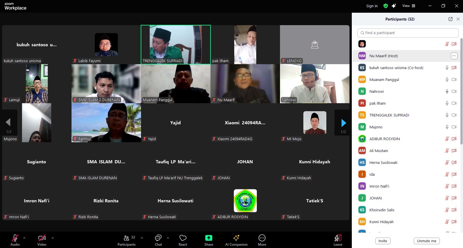 Lembaga Pendidikan (LP) Ma’arif NU Trenggalek bersama Universitas Islam Malang (Unisma) menggelar rapat koordinasi secara daring melalui Zoom, Kamis (15/1), guna mematangkan persiapan Roadshow Unisma ke LP Ma’arif NU Trenggalek sekaligus rangkaian giat Ma’arif yang akan dilaksanakan pada awal Februari 2026. Kegiatan tersebut mencakup workshop kecerdasan buatan (AI), workshop pembelajaran mendalam bagi guru PAUD, serta pengobatan gratis untuk masyarakat.